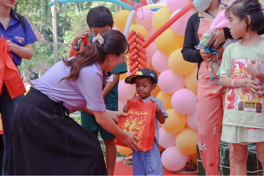 Volunteers also brought joy through game booths and cultural exchanges, creating a lively Tet atmosphere for the children.