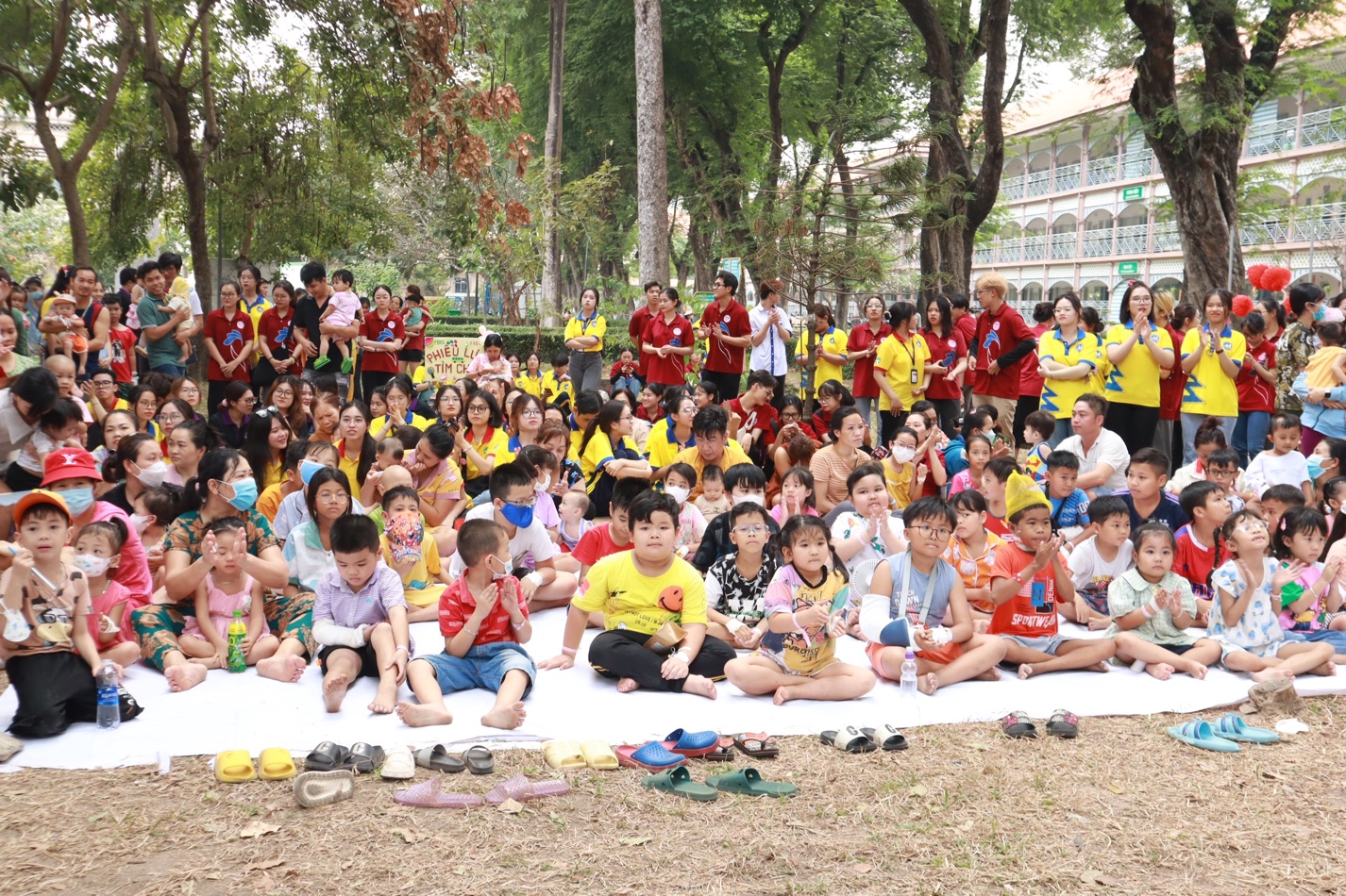 In addition, there was enthusiastic support from the Social Work Team, the Communications Team, the English Club, and the Investors Club under the Faculty of Finance – Banking, who organized traditional game booths for the pediatric patients.