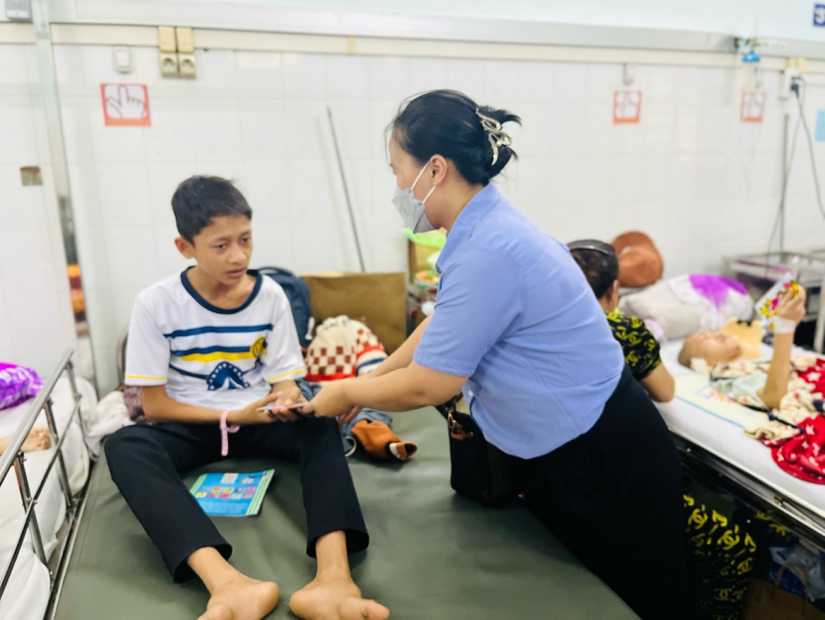 Figure 6. Presenting gift sets sponsored by partner units to pediatric patients.