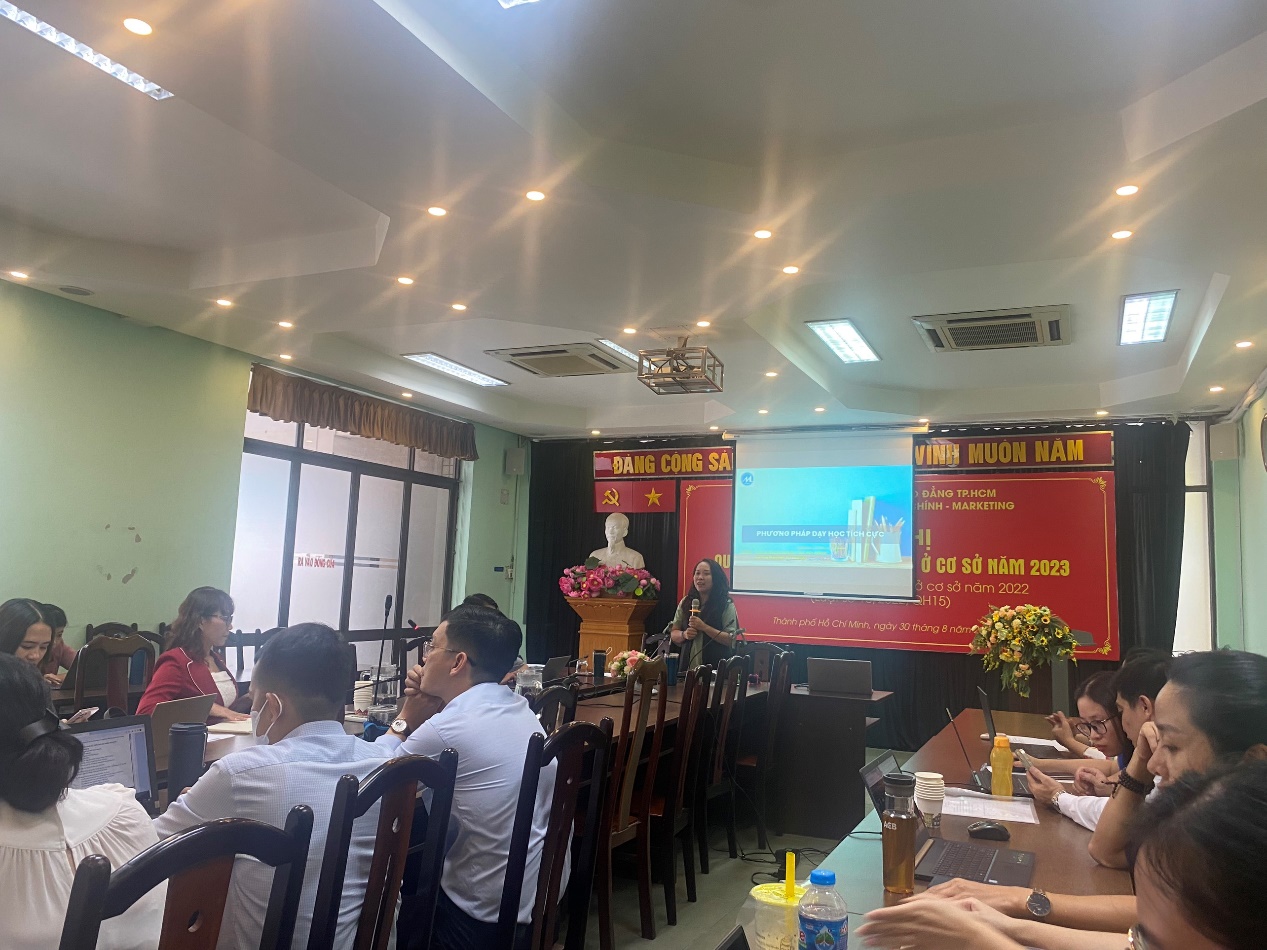With the desire to improve the quality of education and training and create a forum for lecturers to have the opportunity to exchange and learning experiences about modern teaching methods and tools, the Faculty of Finance and Banking, University of Finance - Marketing, organized a discussion with the topic "Innovation of teaching methods and teaching tools" at 14:00 pm on September 13, 2023. The discussion was moderated by Assoc. Prof., Ph.D. Nguyen Thi My Linh - Dean of the Faculty of Banking and Finance with the participation of two guest speakers, Ph.D. Dao Xuan Phuong Trang _ Head of Department of Business English, Faculty of English, Ho Chi Minh City University of Education and MSc. Cao Hong Phat _ Lecturer of Faculty of English, Ho Chi Minh City University of Education.