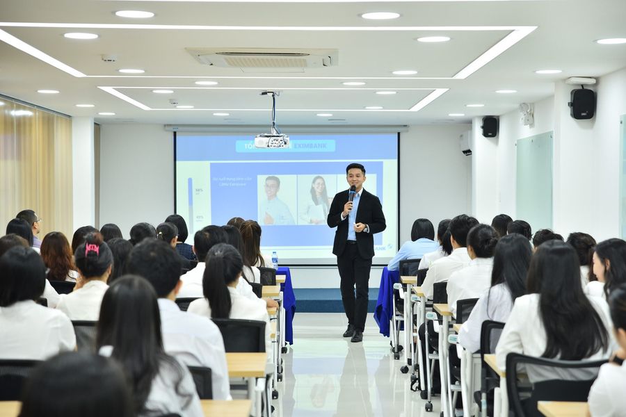 One of the most critical roles of the graduation thesis and final internship is providing opportunities for students to apply and test the professional knowledge they have learned. It helps students build confidence and a deep understanding of the finance and banking field. When interning at EXIMBANK, students learn knowledge, and EXIMBANK also creates an environment to develop soft skills for UFM students. Students will learn to work in teams, manage time, solve problems, and interact with colleagues and real bank customers. These skills are essential at work and affect students' future personal and professional development.