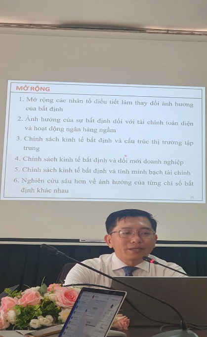 The seminar not only provided a forum for scholarly exchange between PhD candidates and lecturers, but also offered access to new theoretical viewpoints and practical applications amid a volatile global economic–financial context. In his keynote, Prof. Dr. Dang Van Dan analyzed core features of risk and uncertainty in the modern economic environment and suggested approaches for research on finance–banking models. The presentation was highly evaluated for academic rigor and applicability, especially useful for candidates in orienting and implementing their dissertations.