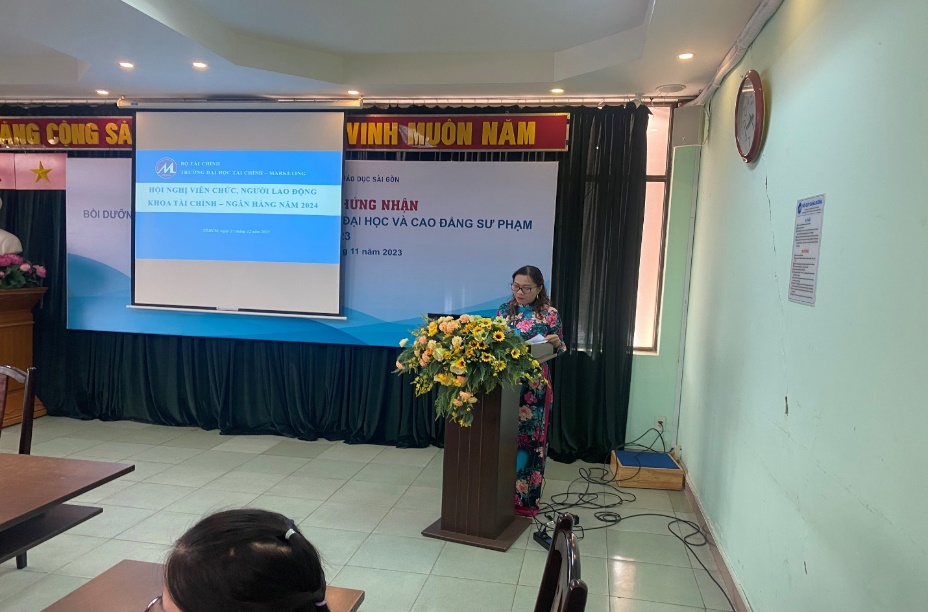 Based on the plan no. 2757/KH-DHTCM dated November 30, 2023, on Organizing the Conference of Delegates of Officials and Laborers of the University of Finance and Marketing in 2024, on the morning of December 27, 2023, The Faculty of Finance and Banking organized a Faculty-level Labour Conference. This is an opportunity for faculty employee officers to give opinions on managing and supervising issues related to their rights, interests, obligations and responsibilities in the UniversityUniversity. Participating in the Conference were comrade Le Trung Dao, Vice-Rector of the University, and all staff of the Faculty of Finance and Banking. At the Conference, all employee officers heard the Faculty's 2023 activity report and 2024 work plan. Accordingly, in 2023, the Faculty will carry out the plan on teaching, scientific research and other tasks; some content will exceed the set goals, such as many articles published at International Conferences and International journals, PhD students completed on time, the number of scientific research hours conducted by lecturers increased and so on. It is considered the result of the solidarity and efforts of the faculty leaders and all workers in the Faculty. Regarding direction, employee officers had meaningful suggestions and goals consistent with the Faculty's situation and the University's direction. The Conference also listened to many frank and responsible contributions from employee officers on the professional activities of the Faculty as well as the activities of the University: team development, training programs, scientific research, infrastructure, etc. In the guiding speech of comrade Le Trung Dao, he praised the outstanding achievements of the Faculty and also responded to some questions from employee officers. The clear, accurate, and reasonable answers of comrade Le Trung Dao have clarified the remaining issues and created trust and excitement for the entire Faculty of Labor. Representative of the Presidium, Assoc. Prof. Ph.D. Nguyen Thi My Linh, Head of the Faculty of Finance and Banking, spoke to receive guidance from the Board of Management. After the discussion, delegates are elected to attend the school-level Labor Union conference. According to the allocation, the Faculty of Finance and Banking has one mandatory delegate, 11 official delegates and two alternate delegates. Criteria for selecting delegates are clearly stated, and nominations take place democratically. After secret voting, the Faculty of Finance and Banking has selected delegates to attend the university-wide Labour Conference scheduled for the morning of January 12, 2024. At the end of the Conference, the board of faculty leadership thanked all the lecturers for their collective efforts to help the Faculty achieve outstanding achievements in 2023 and sent New Year wishes to all employee officers. Here are some pictures of the Conference:
