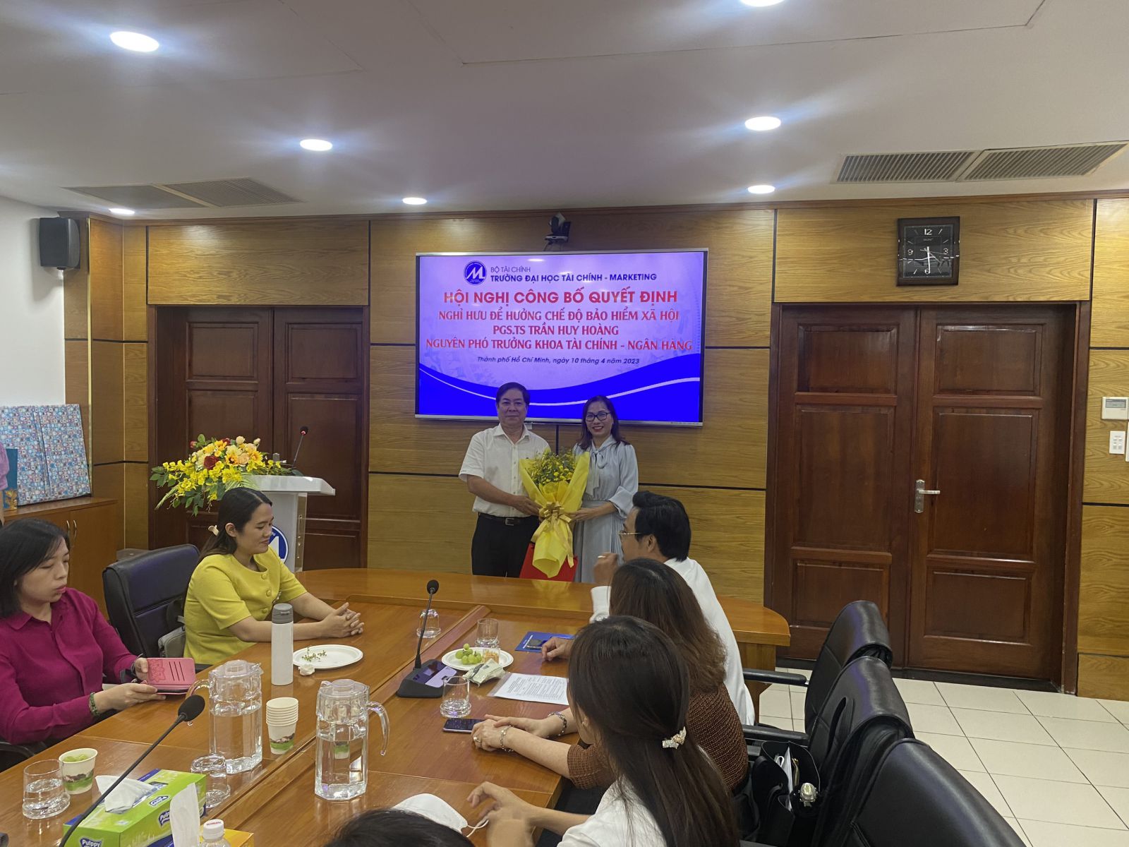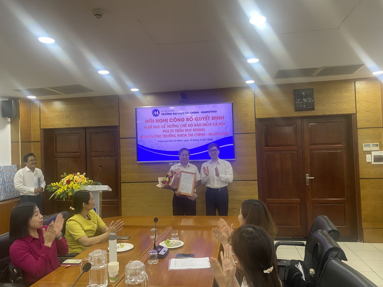 On the afternoon of April 10, 2023, in a warm, solemn, and affectionate atmosphere, the University of Finance - Marketing (UFM) organized a conference to announce the decision to retire and enjoy social insurance benefits for Assoc. Pr. Dr. Tran Huy Hoang, former vice head of Finance and Banking Faculty after many years of service at the University.