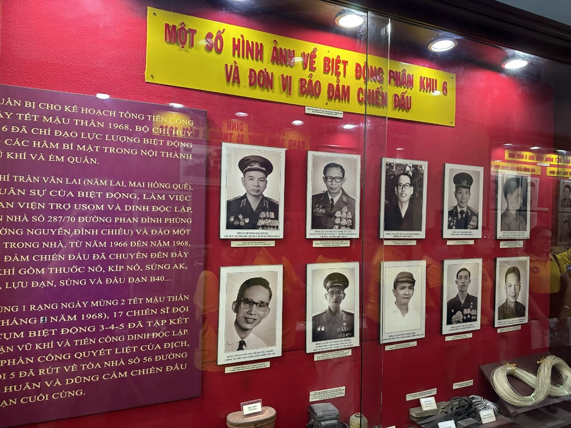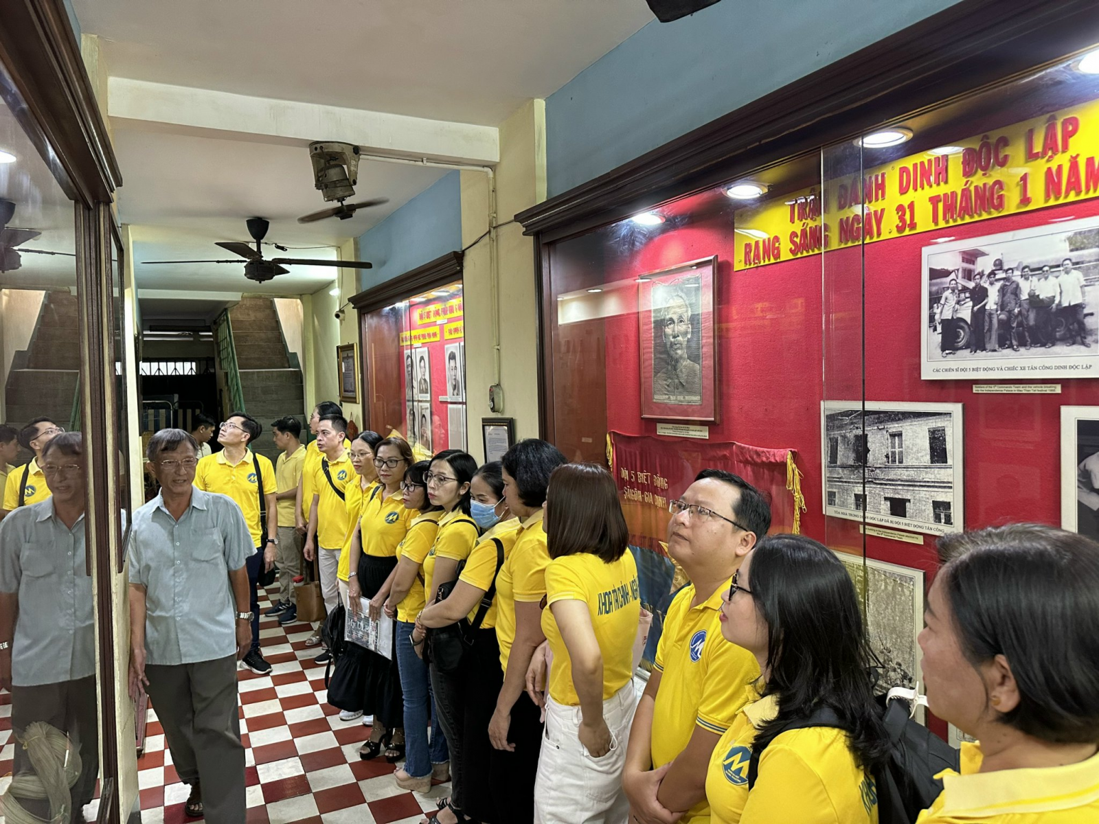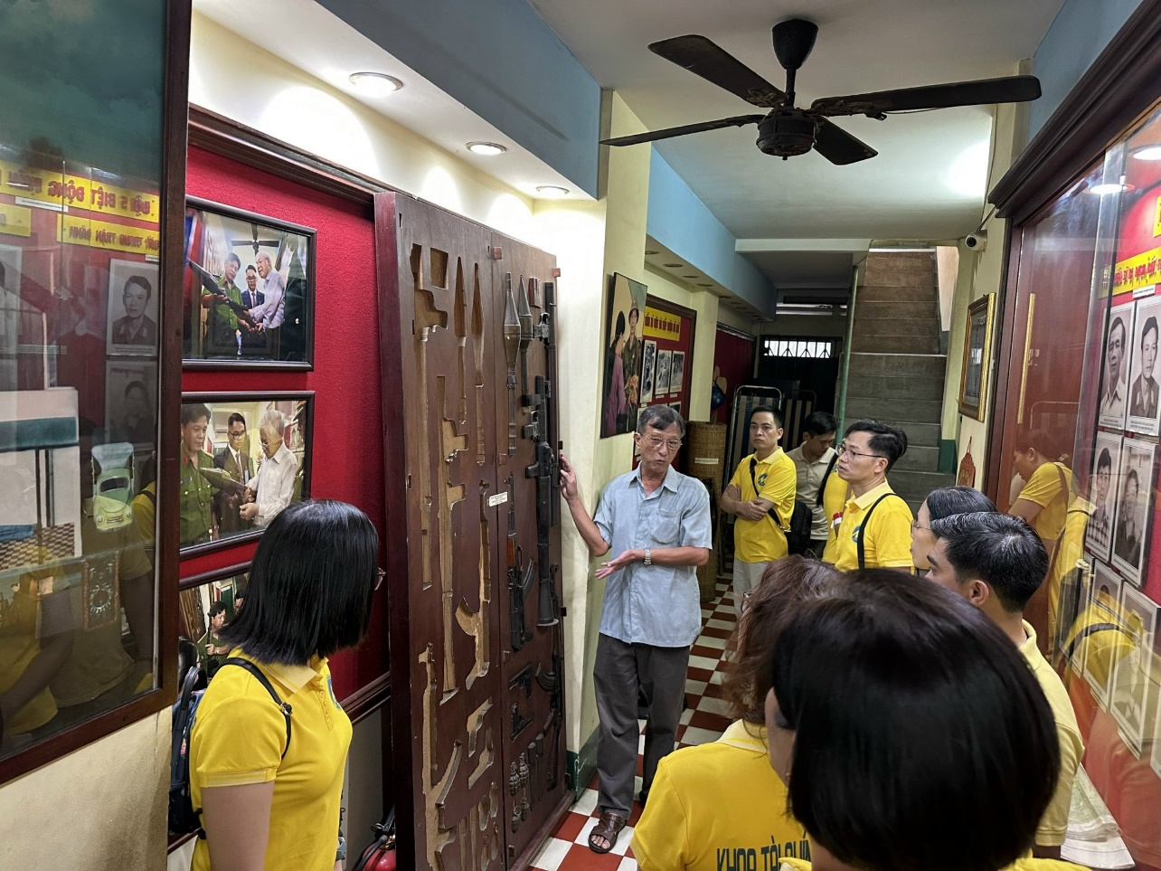 The Finance - Banking Faculty Party Cell was directly introduced by comrade Nguyen Huu Phuc - Chairman of the Veterans Association of Ward 5, District 3, Ho Chi Minh City about the process of formation and becoming a secret base of the Saigon special forces, and introduced the exhibits on display at the National Historical Site.
