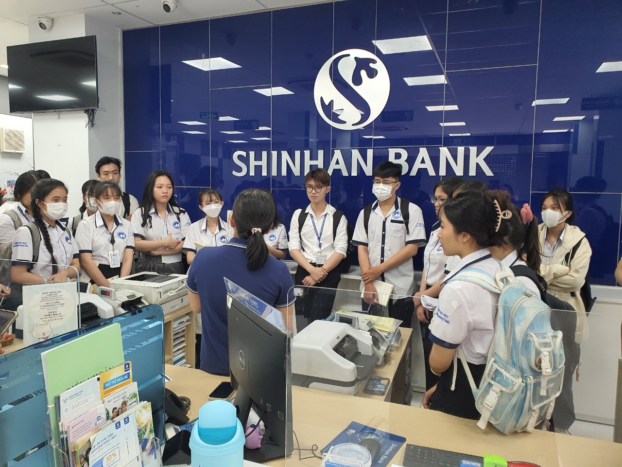 Students familiarized themselves with the working environment at Shinhan Bank.