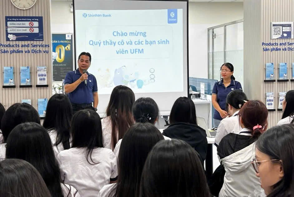 In Semester 1/2025, major commercial banks in Ho Chi Minh City such as ACB and Shinhan Bank actively supported the program, receiving and mentoring 100% of K22 students.