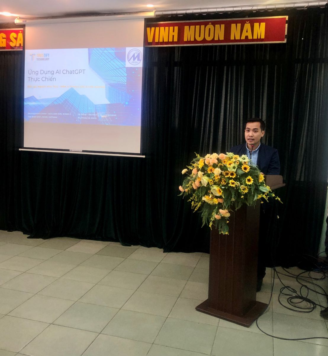 Mr. Nguyen Huu Thuc presents on applying AI ChatGPT in finance