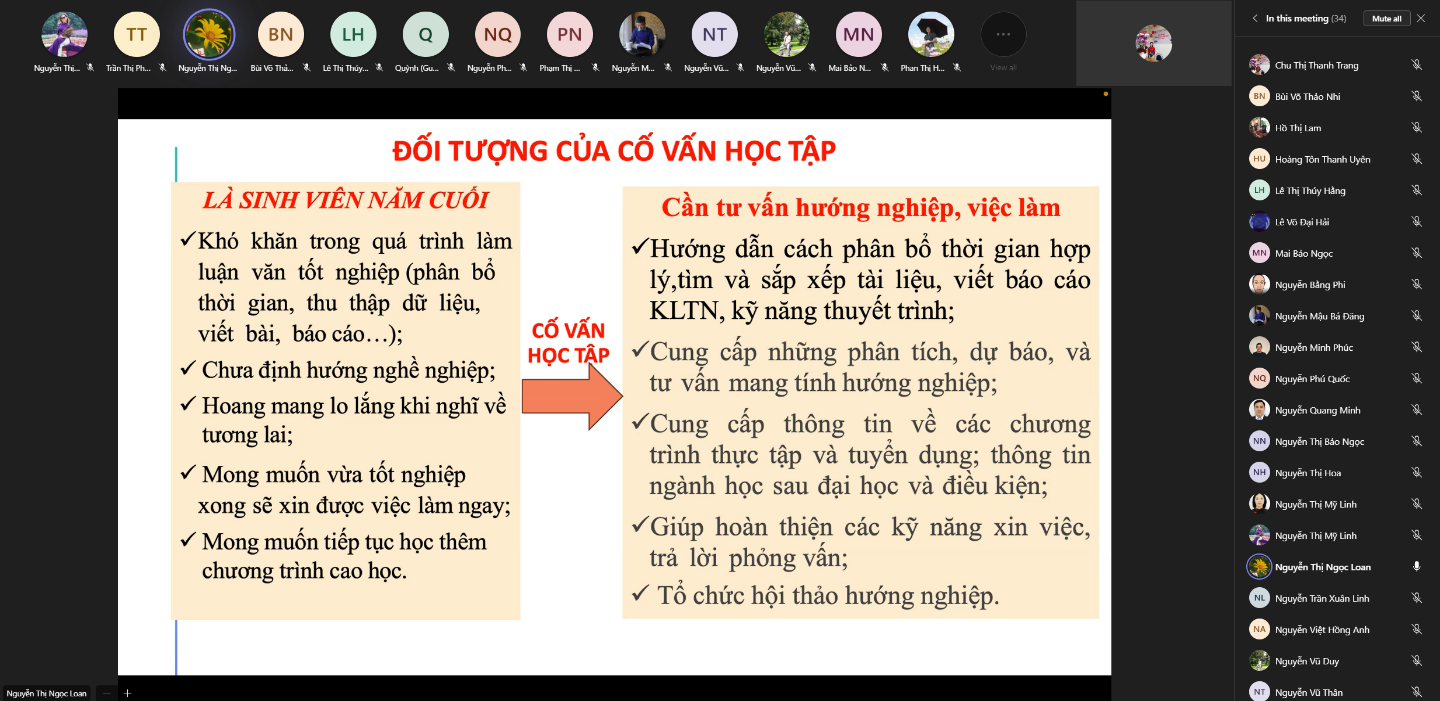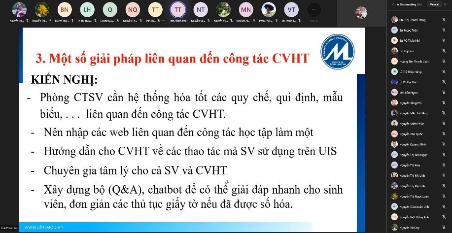 The seminar provided much essential knowledge and skills for academic advising. Lecturers and staff agreed that to perform advising effectively, the advisor team must truly strive and uphold responsibility, and there must be cooperation among departments, faculties, and among advisors themselves.