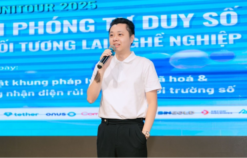 Mr. Tran Huyen Dinh, Head of the Fintech Applications Committee of the Vietnam Blockchain & Digital Asset Association and CEO of AlphaTrue, said 2025 marks a milestone in the global crypto‑asset market, with total capitalization surpassing USD 4,000 billion for the first time and over 716 million users—up 16% from 2024. Stablecoins alone reached a total transaction volume of USD 46,000 billion, comparable to major payment systems such as Visa and ACH, indicating that crypto‑assets are steadily integrating into traditional finance. He emphasized that Vietnam is among the seven countries with the highest crypto‑asset ownership rates and is benefiting from open government policies such as Resolution 05/2025/NQ‑CP piloting a crypto‑asset market and the Digital Technology Industry Law. These legal frameworks, he noted, underpin Vietnam’s entry into the era of digital finance integration and open new career opportunities in fintech, risk management, technology law, and digital product development.