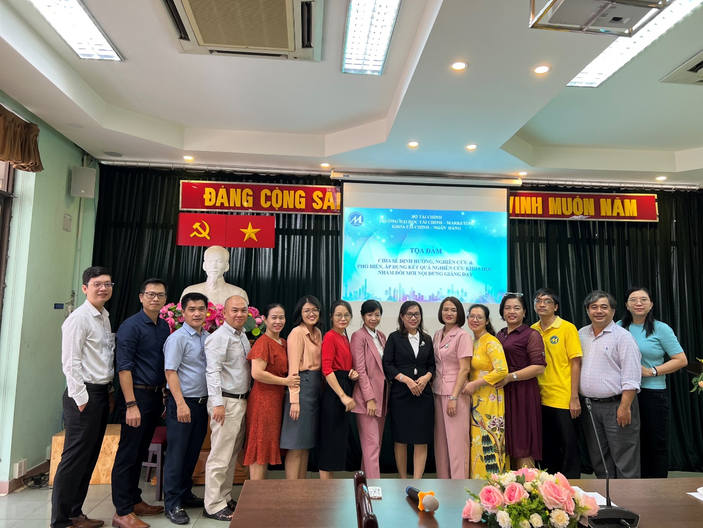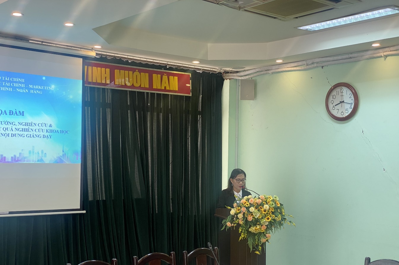 Scientific research is a task closely linked to teaching work at all universities. Scientific research activities play an important role, helping to expand knowledge, contributing to improving the teaching quality of lecturers. Therefore, with the aim of disseminating and applying the scientific research results of lecturers in the application of innovative teaching content, with the consent of the University, the Faculty of Finance and Banking organized a Workshop with the theme: "Sharing research orientation and dissemination, application of scientific research results to innovate teaching content" on the morning of May 26, 2023, in room B.001, campus 778 Nguyen Kiem, Ward 4, Phu Nhuan District.