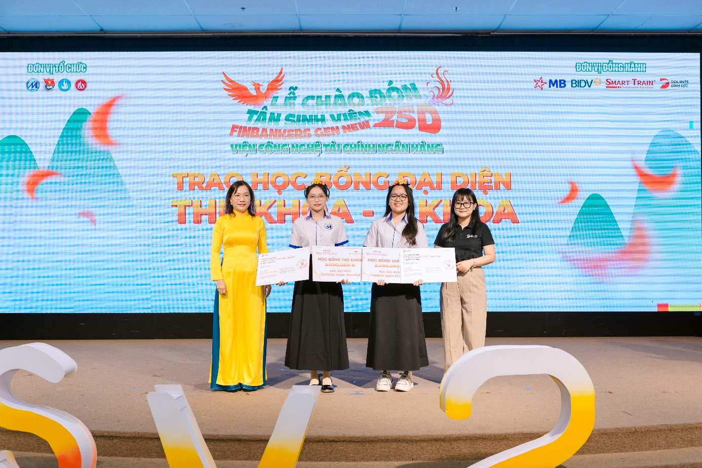 Within the program, the Institute recognized two valedictorians and two salutatorians, the Top 10 entrants with the highest admission scores, and outstanding members of the Youth Union, Student Association, and clubs. The activity acknowledged the new cohort’s academic excellence and spread a spirit of striving throughout the Institute. Study‑encouragement scholarships were awarded thanks to support from MB Bank, BIDV – Bac Sai Gon Branch, DOL English (IELTS Dinh Luc), and Smart Train Academy Co., Ltd., adding motivation for students on their learning journey.